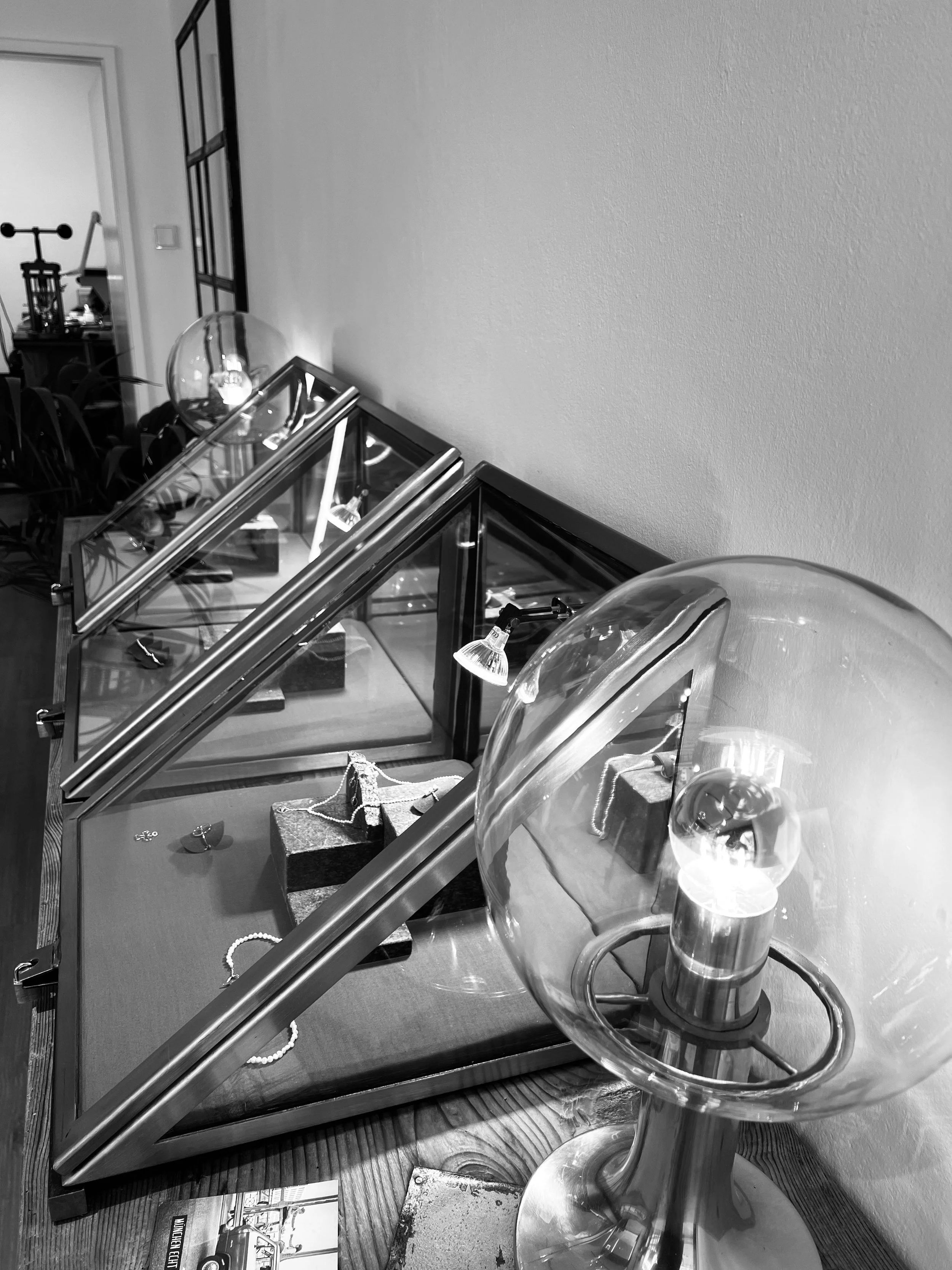 Chris: Ja. Voll. Das ist halt unser Baby. Alles selbstgestaltet. Ich freu mich jeden Tag, wenn ich hier die Türe aufsperre. (strahlt) Das erste Mal den Laden fertig eingerichtet zu sehen, das war der Hammer. Und wenn die Leute strahlen, wenn sie ihre Ringe sehen und für ein anderes Schmuckstück oder eine Reparatur wiederkommen. Das ist einfach super. (Fährt schelmisch fort:) Und wenn meine Frau auch mal zum Arbeiten kommt, das ist auch echt schön…